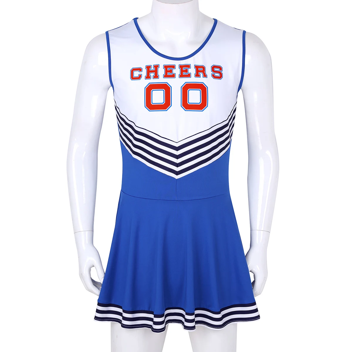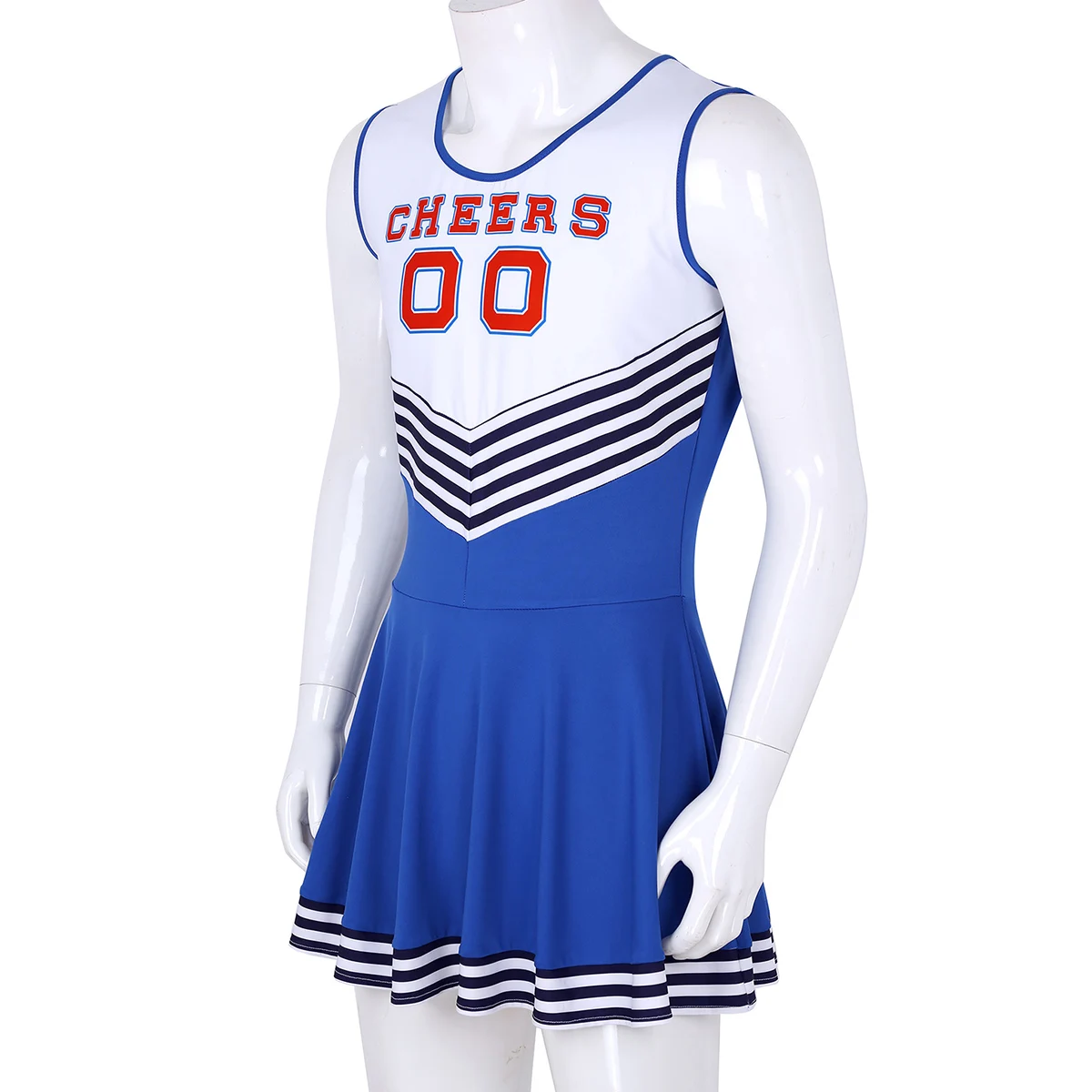 BEST Men Sissy Dress Charming Cheerleader Cosplay Costume Dress Scoop Neck Sleeveless Pleated Fancy Shor