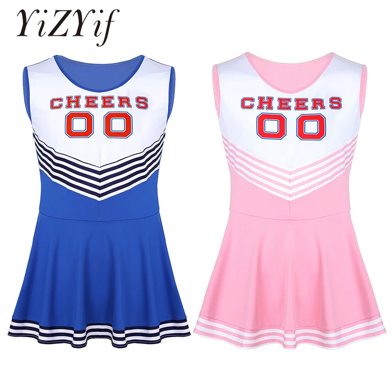 Men Sissy Dress Charming Cheerleader Cosplay Costume Dress Scoop Neck Sleeveless Pleated Fancy Shor